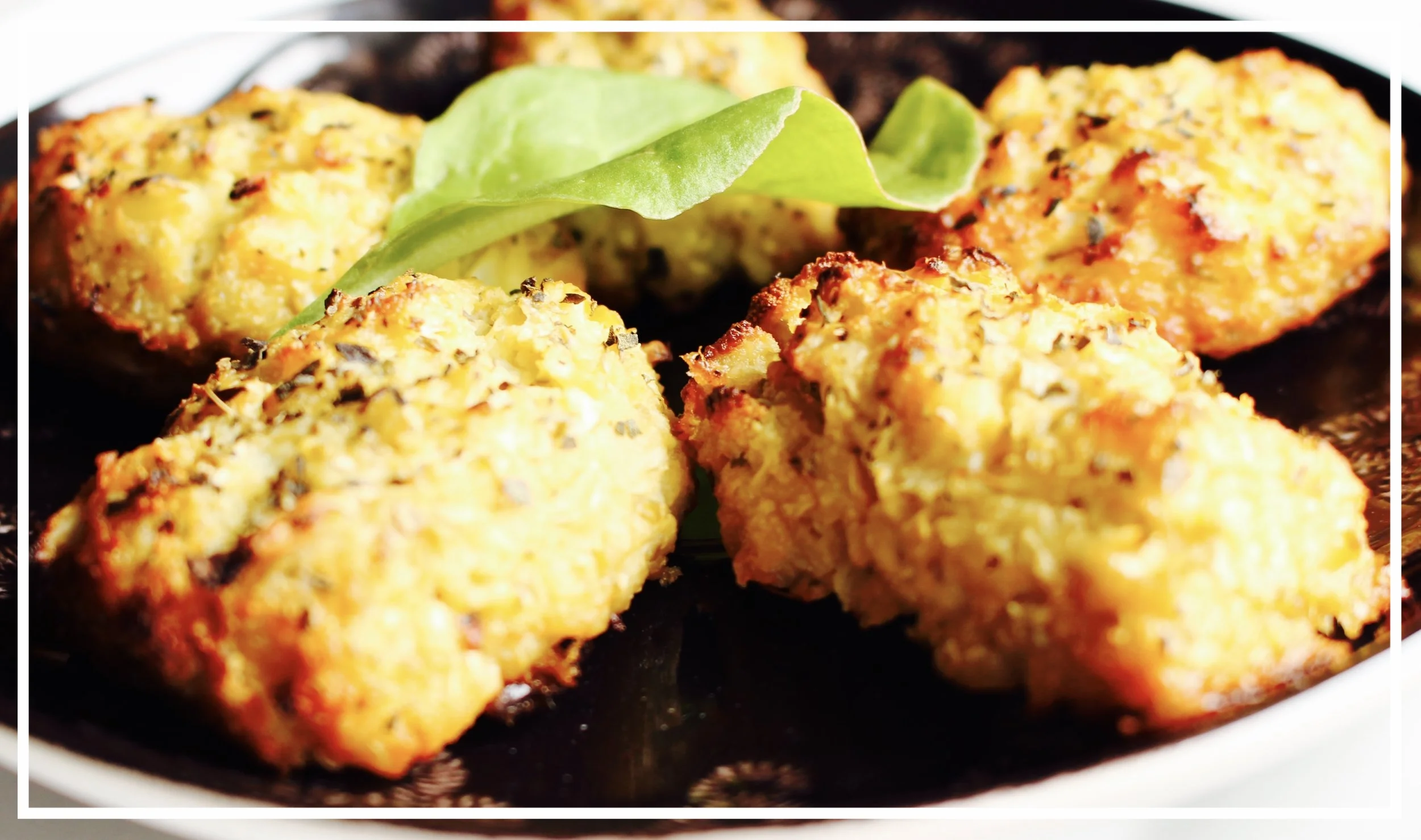 On a parchment lined baking sheet add some coconut or olive oil. Dip a tablespoon into the cauliflower mixture, roll into hand and shape into an oval. Place on baking sheet. Then pop into a 400 F oven for about 30 mins. Checking occasionally. Then cool for 5 minutes and serve as a side or an appetizer:)
